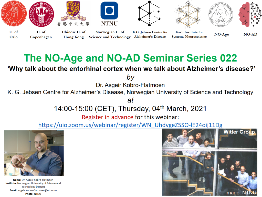 04th March 2021: Lecture by Dr. Asgeir Kobro-Flatmoen on ‘Why talk about entorhinal cortex when we talk about Alzheimer’s disease?’.