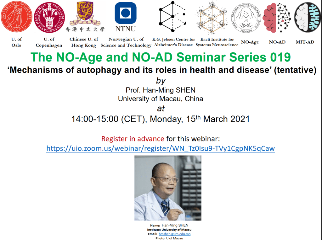 15th March 2021: Lecture by Prof. Han-Ming Shen on ‘Mechanisms of mitophagy and its roles in health and disease’, University of Macau, China