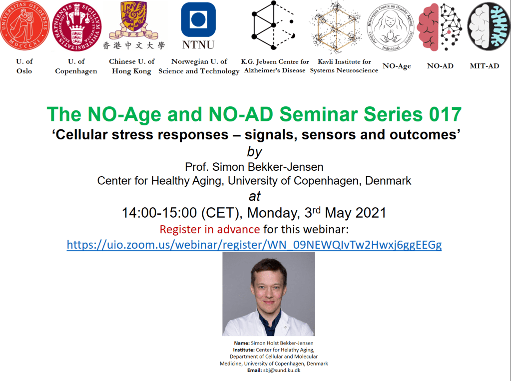 03rd May 2021: ‘Cellular stress responses, signals, sensors, and outcomes’ by Prof. Simon Bekker-Jensen, University of Copenhagen, Denmark.