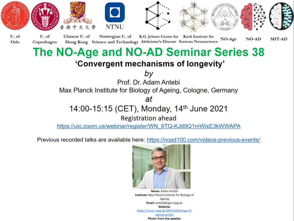 14th June 2021: ‘Convergent mechanisms of longevity’ by Prof. Dr. Adam Antebi, Max Planck Institute for Biology of Ageing, Cologne, Germany