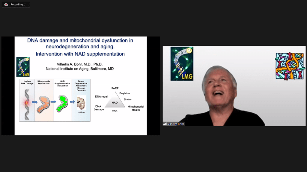 16th June 2021: ‘DNA damage and mitochondrial dysfunction in neurodegeneration and ageing: intervention with NAD supplementation’ by Dr. Vilhelm A. Bohr, National Institute on Ageing, USA and The University of Copenhagen, Denmark. This was the talk in the ‘Hong Kong-Nordic Research Network’ annual meeting: https://noage100.com/2021/06/23/success-of-the-1st-hong-kong-nordic-research-network-zoom-meeting/