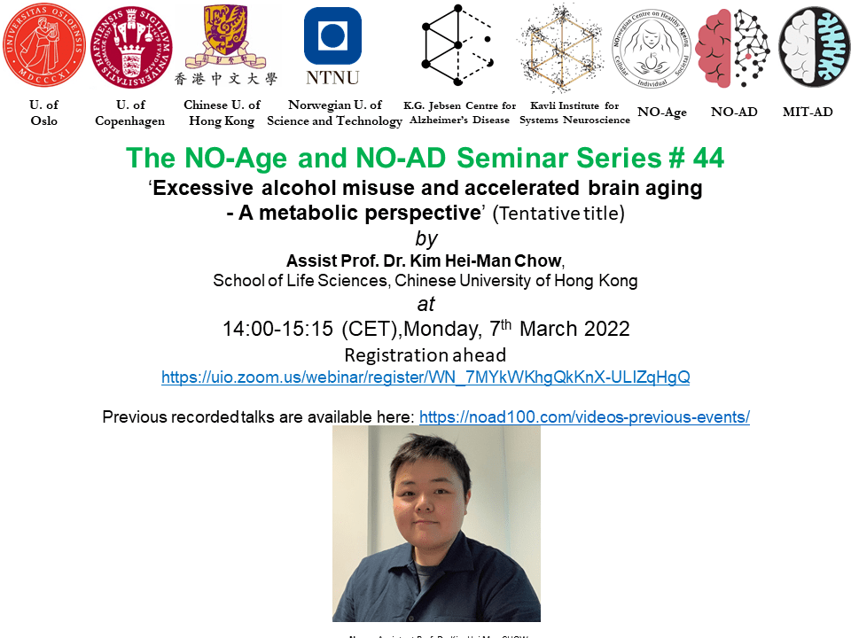 7th March 2022:’ Excessive alcohol misuse and accelerated brain aging- A metabolic perspective’ by Dr. Kim Hei-Man Chow, Chinese University of Hong Kong, China