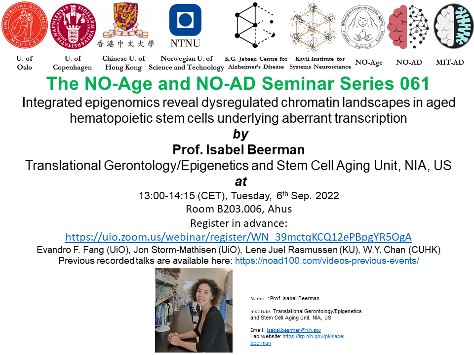 06th Sep 2022: ‘Integrated epigenomics reveal dysregulated chromatin landscapes in aged hematopoietic stem cells underlying aberrant transcription’ by Prof. Isabel Beerman, Translational Gerontology/Epigenetics and Stem Cell Aging Unit, NIA, U.S