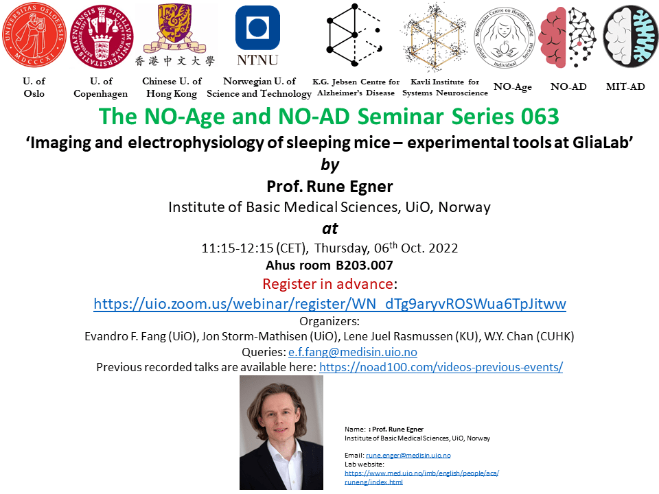 06th Oct 2022: ‘Imaging and electrophysiology of sleeping mice – experimental tools at GliaLab’ by Prof. Rune Egner, Institute of Basic Medical Sciences, UiO, Norway